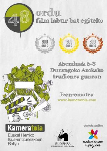 Topagune euskaltzaleen elkarteak Kameratoia Euskal Herriko ikus-entzunezko Rallya antolatu du bederatzigarren aldiz. Lehiaketa Durangoko azokako Irudienea gunean izango da abenduaren 6tik 8ra bitartean. Parte-hartzaileek 48 ordu izango dituzte hiru eta zortzi minutu bitarteko film labur bat egiteko. Izena emateko epea azaroaren 22ra arte egongo da zabalik www.kameratoia.com webgunean. Lehiaketan 18 urtetik eta 35 urtera bitarteko gazteek parte hartu ahal izango dute eta ekipo propioa erabili beharko dute. Filmetan hizkuntzaren presentzia ezinbestekoa izango da, ahozkoa edo idatzizkoa, eta hori euskara izan behar da.