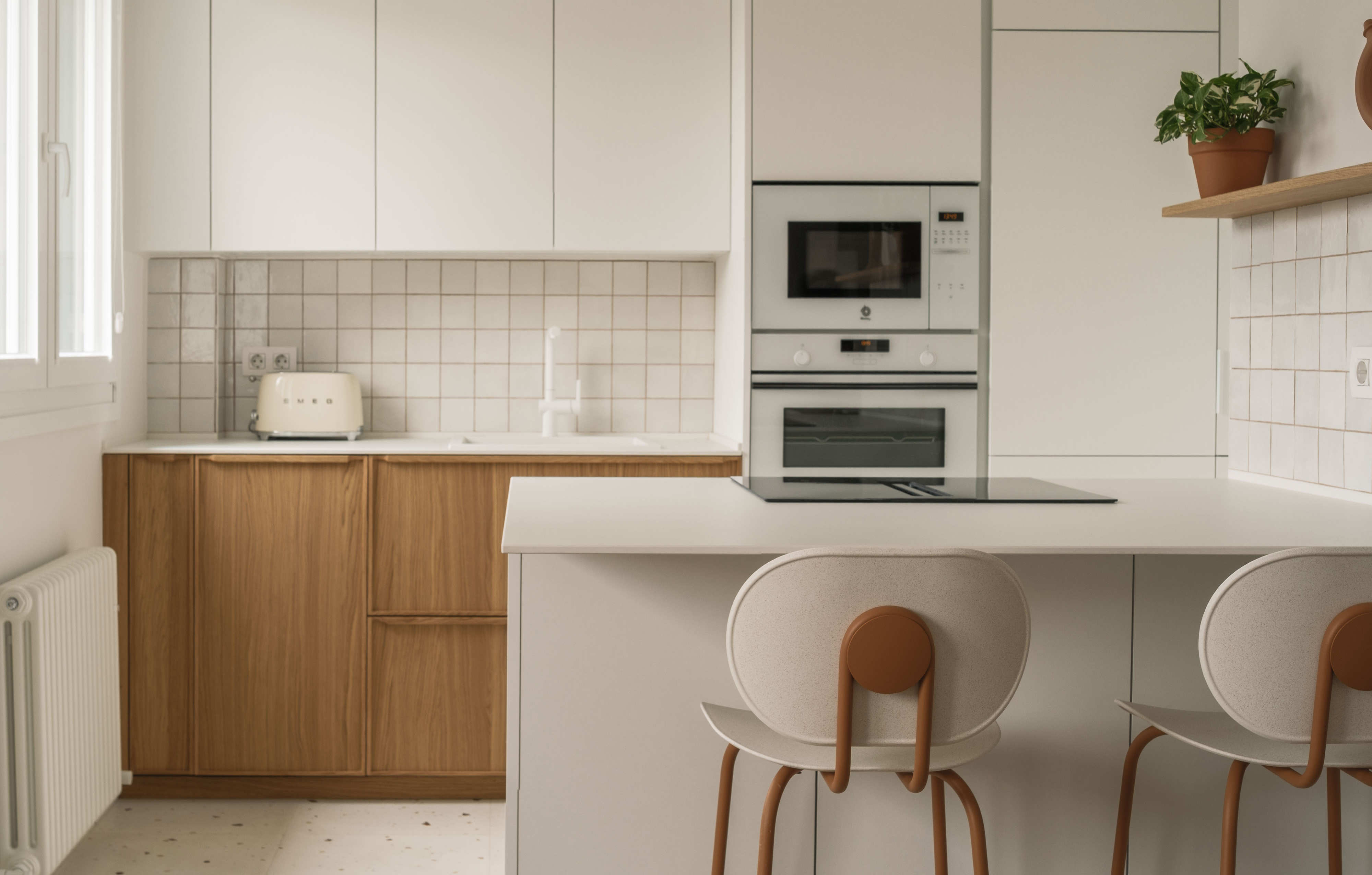 - Funtzio anitzeko penintsula: sukaldatzea, lan egitea eta partekatzea, guztia leku berean.